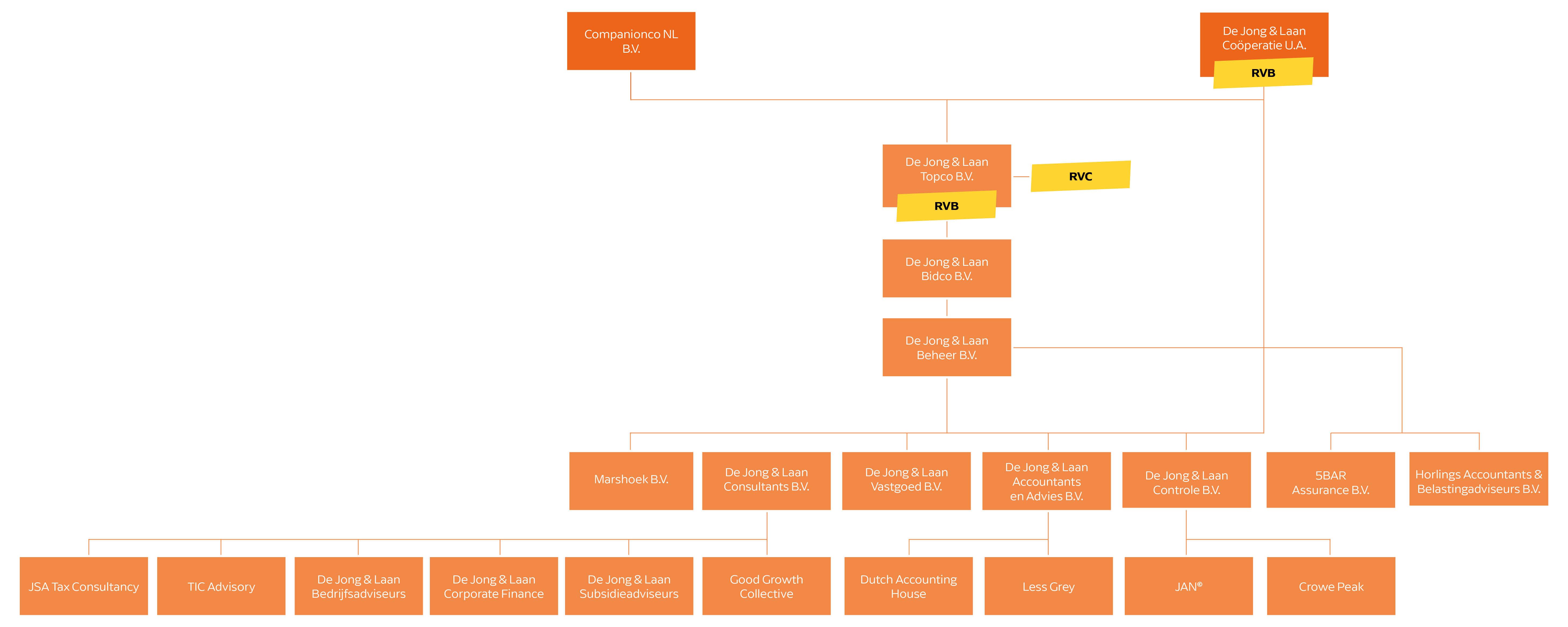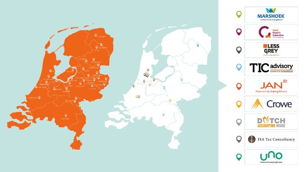 We zijn onder het label de Jong & Laan en enkele endorsements gevestigd in Noord, Oost, Midden en West Nederland. Daar bieden we vanuit meer dan 35 vestigingen met ruim 1.300 medewerkers full-service accountancy en advies dienstverlening aan.
